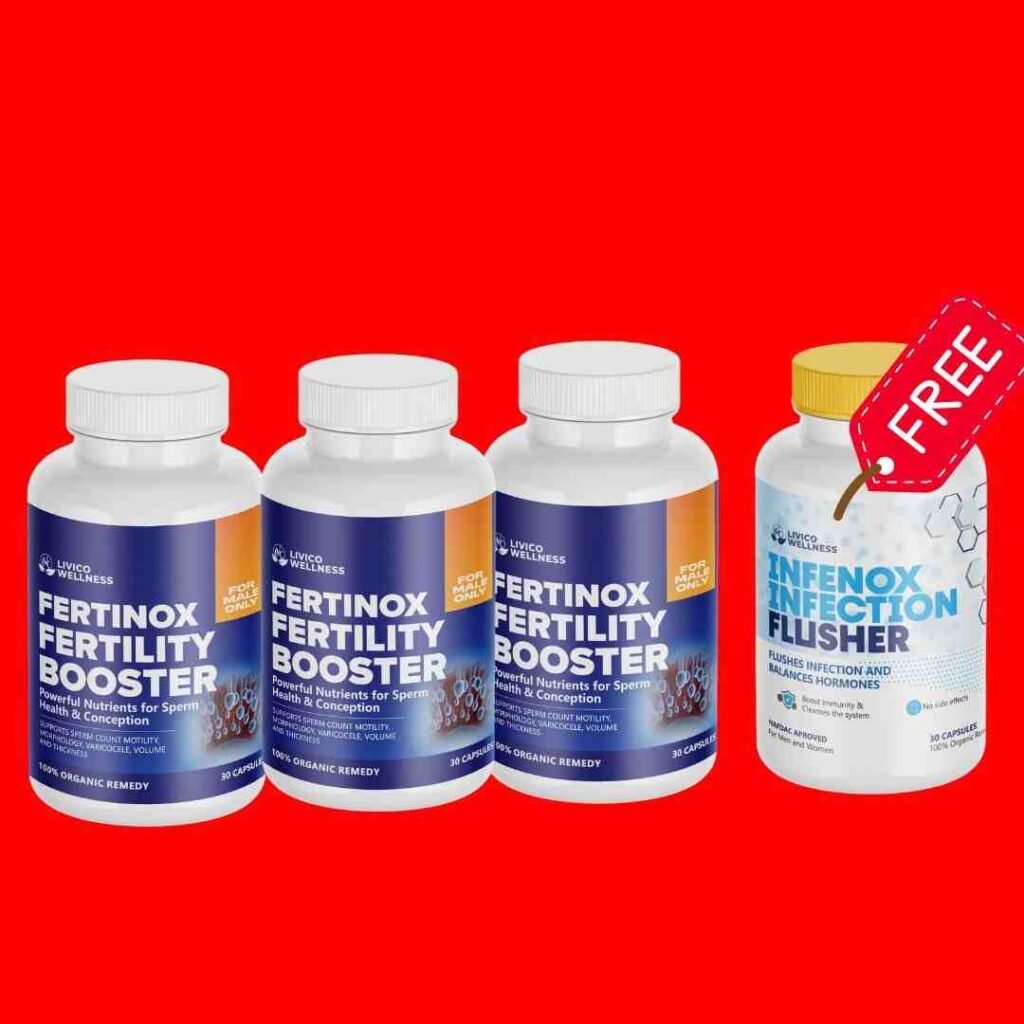 3 bottles of FERTINOX Fertility Booster MALE + 1 free Infenox Infection Flusher: ₦38,500