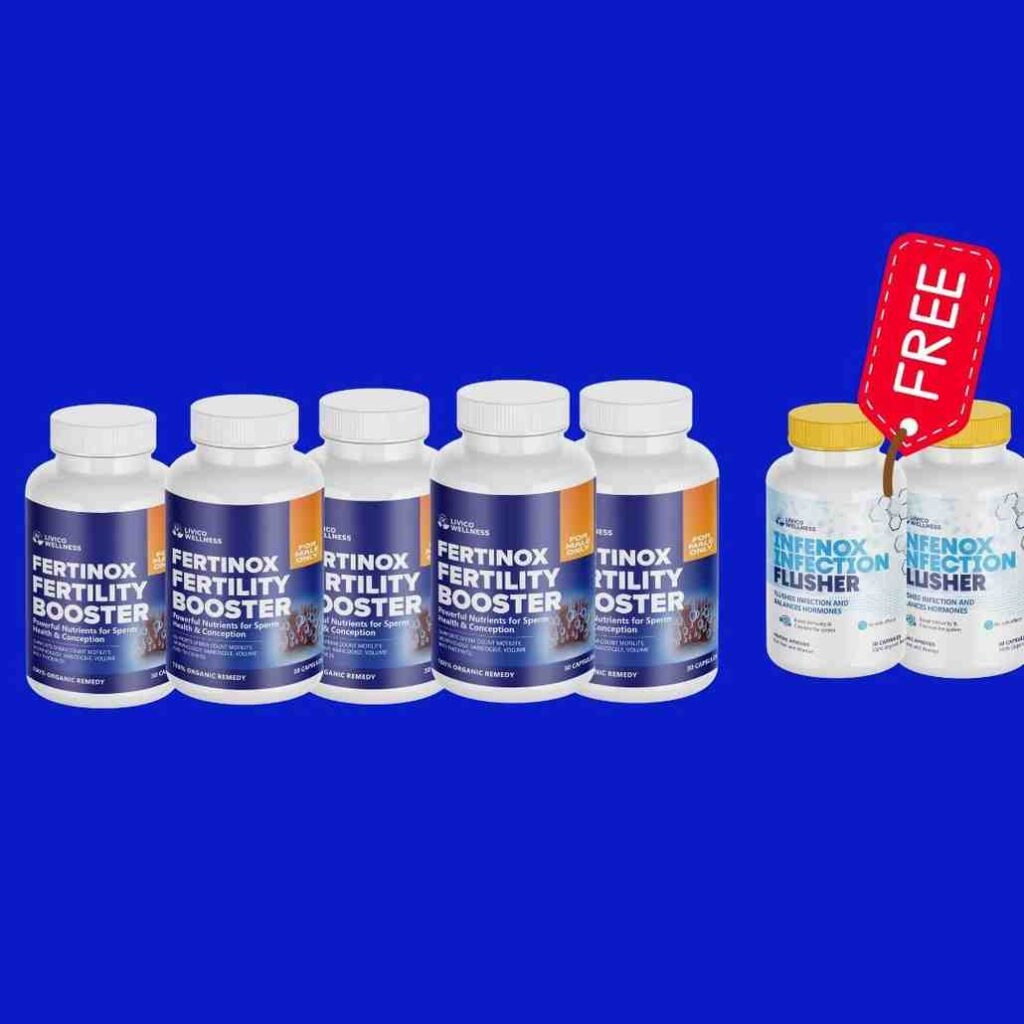 5 bottles of FERTINOX Fertility Booster MALE + 2 free Infenox Infection Flusher: ₦58,500